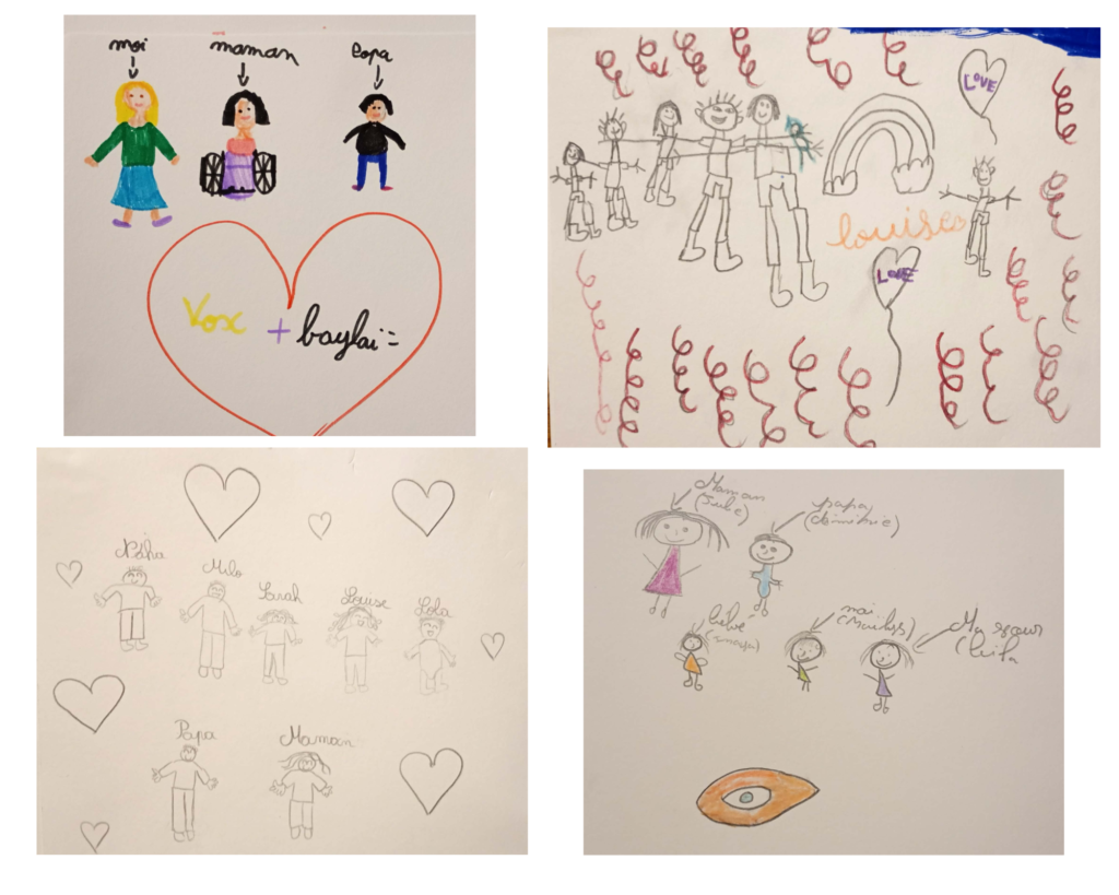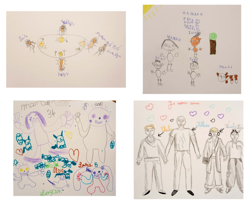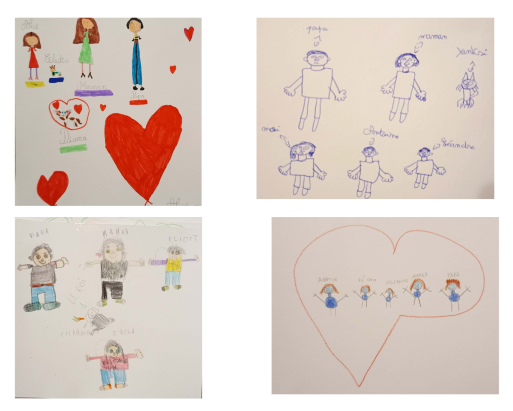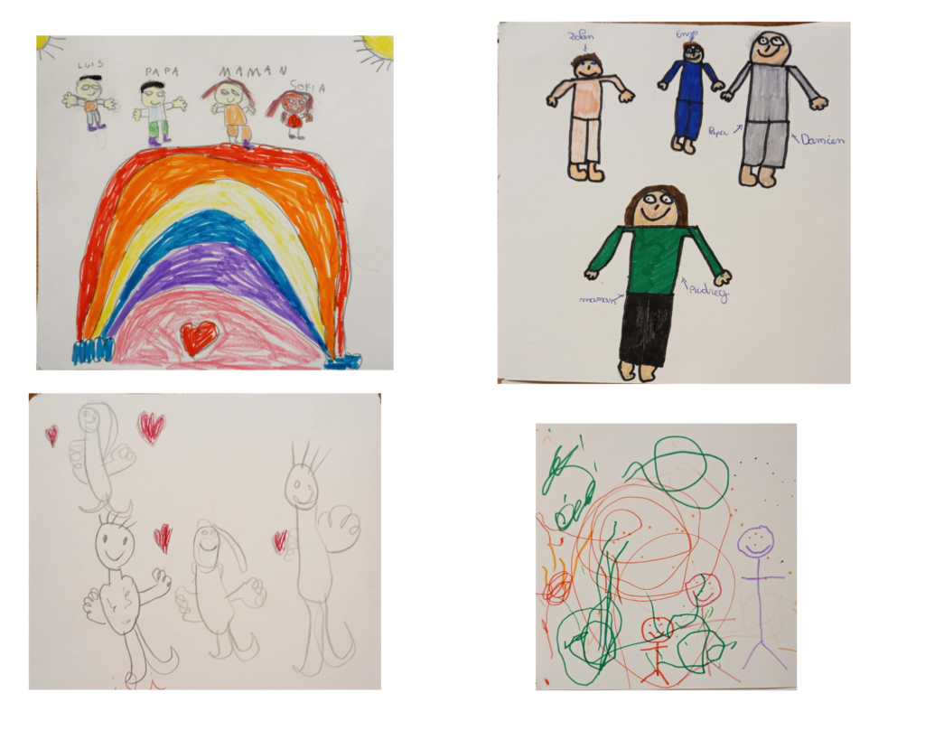 Voilà, ces beaux dessins, ils racontent tous une histoire de famille, à l’instant “t” lors du salon “Dream Kids” car oui c’est bien le rêve de tous les enfants de grandir dans une famille ressourçante et rassurante, et le rêve de tous ceux qui s’engagent sur le chemin de parents.